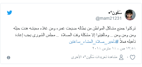 Ohwalhuuabeprm from pbs.twimg.com تعرف على مواقيت الصلاة في مدن مصر اليوم السبت 12 يونيو 2021 مواعيد الصلاة غداً، حيث يزداد موعد المغرب دقيقة يومياً، وتبكير صلاة الفجر وتأخير العشاء لتقترب من التاسعة مساءً: وهي صلاة تطوعية يتم أداؤها ما بين صلاة العشاء وصلاة الفجر (قبل طلوع الفجر). يبدأ وقت صلاة التهجُّد بعد الانتهاء من صلاة العشاء، ويستمرّ وقتها إلى آخر الليل، فيكون الليل كلّه من بعد العشاء إلى الفجر وقتاً للتهجُّد، إلا إنَّ أفضل وقت لصلاة التهجُّد. للمزيد من المعلومات، اقرأ مقالنا عن قيام الليل. ولكن أفضل وقت لأدائها هو قبل طلوع الشمس، في الثلث الأخير من الليل. يبدأ وقت قيام اللّيل بعدَ الانتهاء من أداء صلاة العشاء إلى طلوع الفجر الثّاني، أما أفضل أوقاته فالثّلث الأخير من اللّيل وذلك لما يأتي: وهناك مجموعة من الأحاديث تدل على فضلها منها: أرجأ مجلس الشورى اليوم، توصية عدم إغلاق المحلات وقت الصلاة ما عدا صلاة الجمعة، التي تقدم بها (عطا السبيتي، وفيصل الفاضل، ولطيفة الشعلان، ولطيفة العبدا